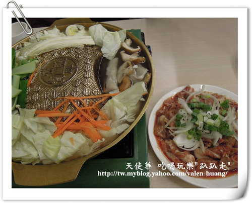 我們點了海鮮煎餅和豬肉銅盤烤肉,點完菜就到櫃台去拿小菜,吃著小菜邊等主菜,主菜還沒上桌前小菜剛好可以止餓~~