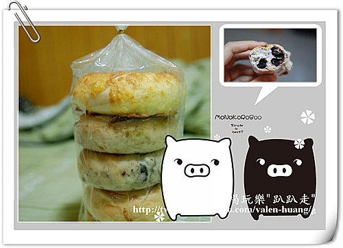 我買的是綜合貝果,裡面有原味、蔓越莓、起司、藍莓、全麥核桃,其中我最愛藍莓口味,因為裡面有超多的藍莓,很有咬勁的貝果,越咬越香