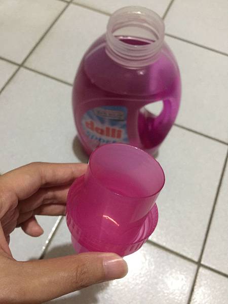 瓶身有設計把手,方便握著來倒取洗衣精