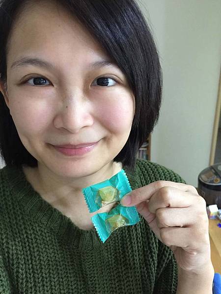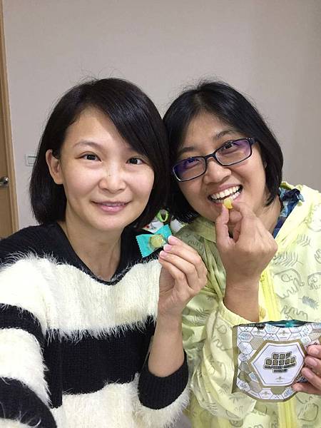 我就拿出綠蜂膠蜂蜜潤喉糖來和她分享
