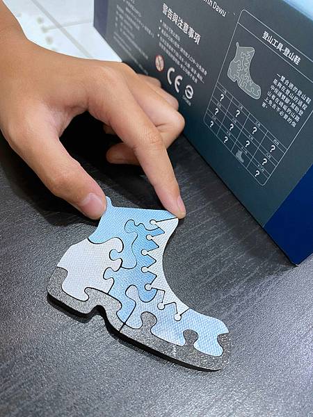 此款木質拼圖的亮點~圖中圖,大武山的圖中圖是登山鞋